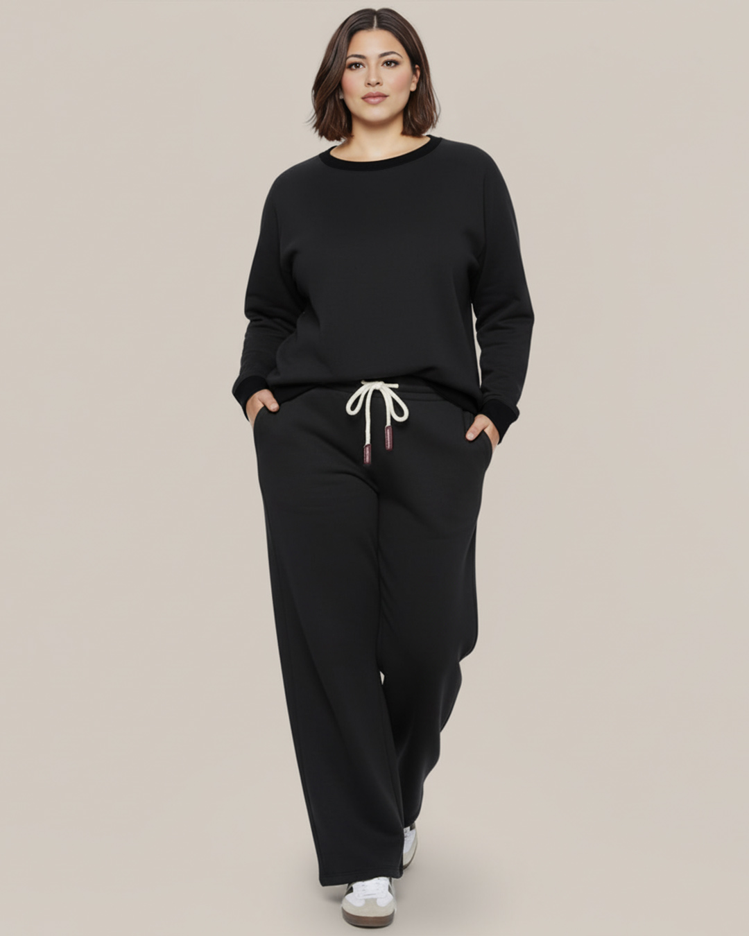 Pantalón jogger urban▷ ¡Eleva tu estilo casual con esta prenda imprescindible! Nuestro jogger de tendencia es ideal para mujeres curvy que buscan comodidad y moda. Confeccionado en un suave tejido de neopreno muy en tendencia esta temporada, cuenta con cordón ajustable y lleva bolsillos. ¡No te quedes sin el tuyo!