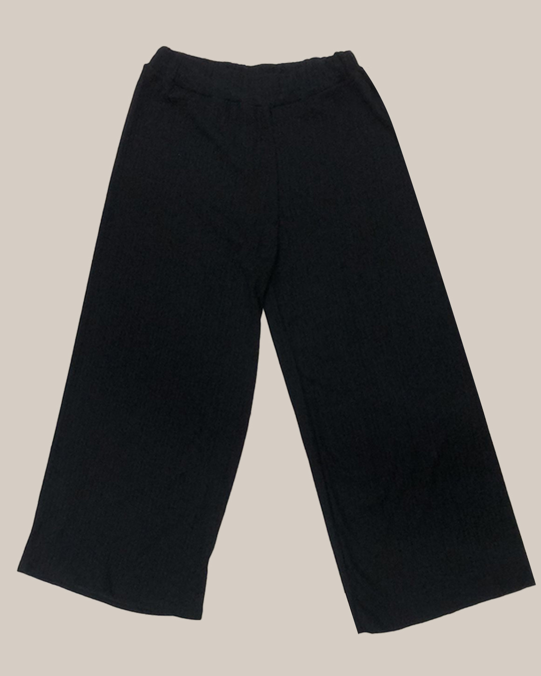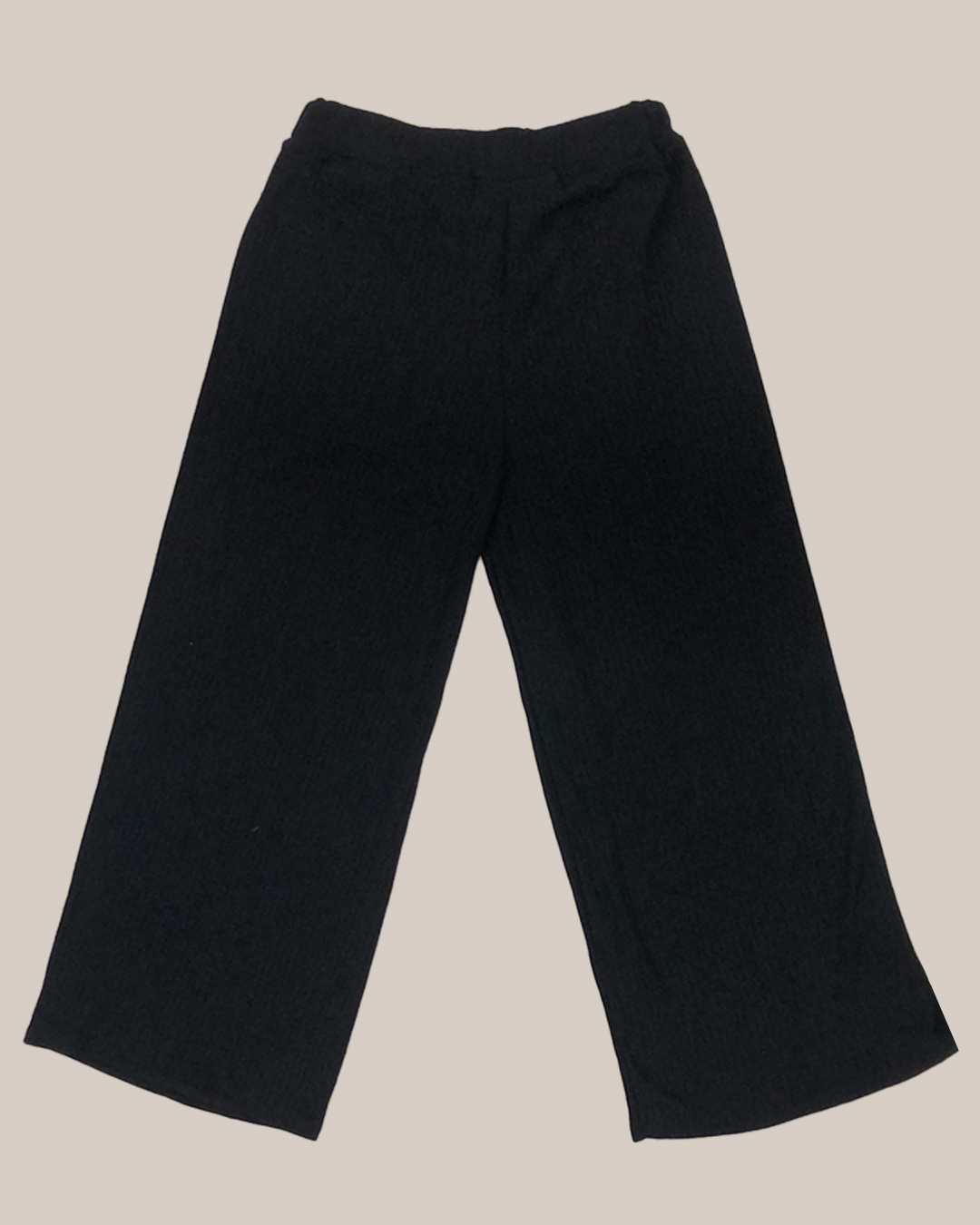 Pantalón Punto Canalé ▷ ¡Comodidad y estilo que te encantará! Confeccionado en un suave punto canalé, este pantalón de pata ancha y cintura elástica es perfecto para un look desenfadado y a la moda. Su corte juvenil lo hace muy versátil. ¡Consigue esta prenda esencial y luce espectacular por un precio increíblemente low cost!
