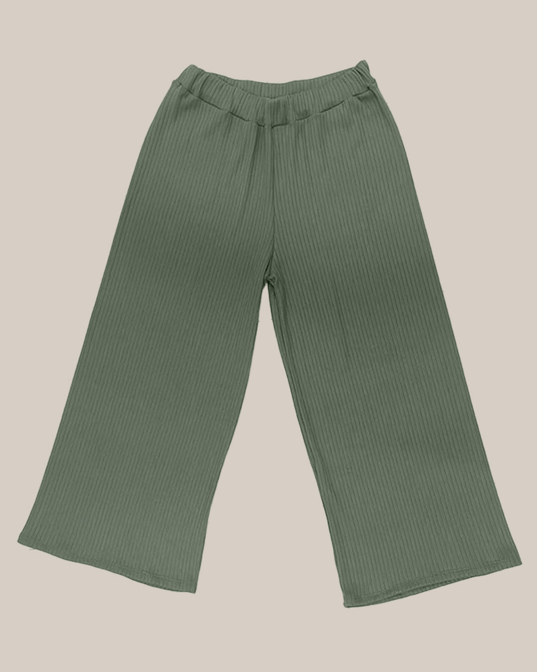 Pantalón Punto Canalé ▷ ¡Comodidad y estilo que te encantará! Confeccionado en un suave punto canalé, este pantalón de pata ancha y cintura elástica es perfecto para un look desenfadado y a la moda. Su corte juvenil lo hace muy versátil. ¡Consigue esta prenda esencial y luce espectacular por un precio increíblemente low cost!