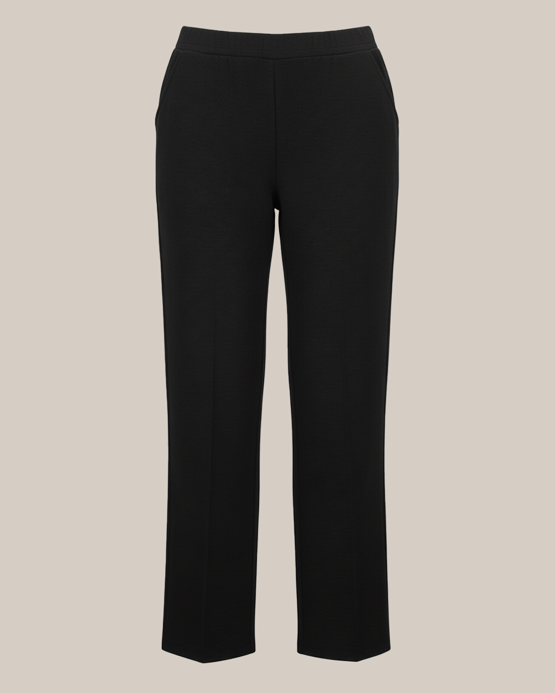 Pantalón Punto Roma Felpa Interior ▷ ¡El equilibrio perfecto entre calidez y estilo! Este pantalón destaca por su suave felpa interior que te mantiene abrigada sin perder la elegancia. Su tejido de punto roma ofrece una caída impecable, con cintura elástica para un ajuste cómodo y favorecedor. ¡La prenda esencial para el invierno de Quiles_Shop!