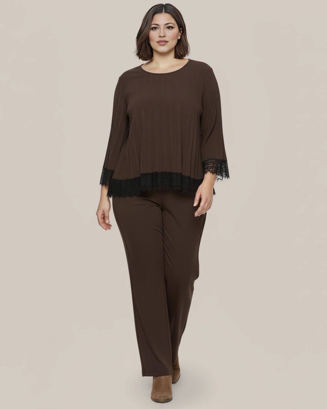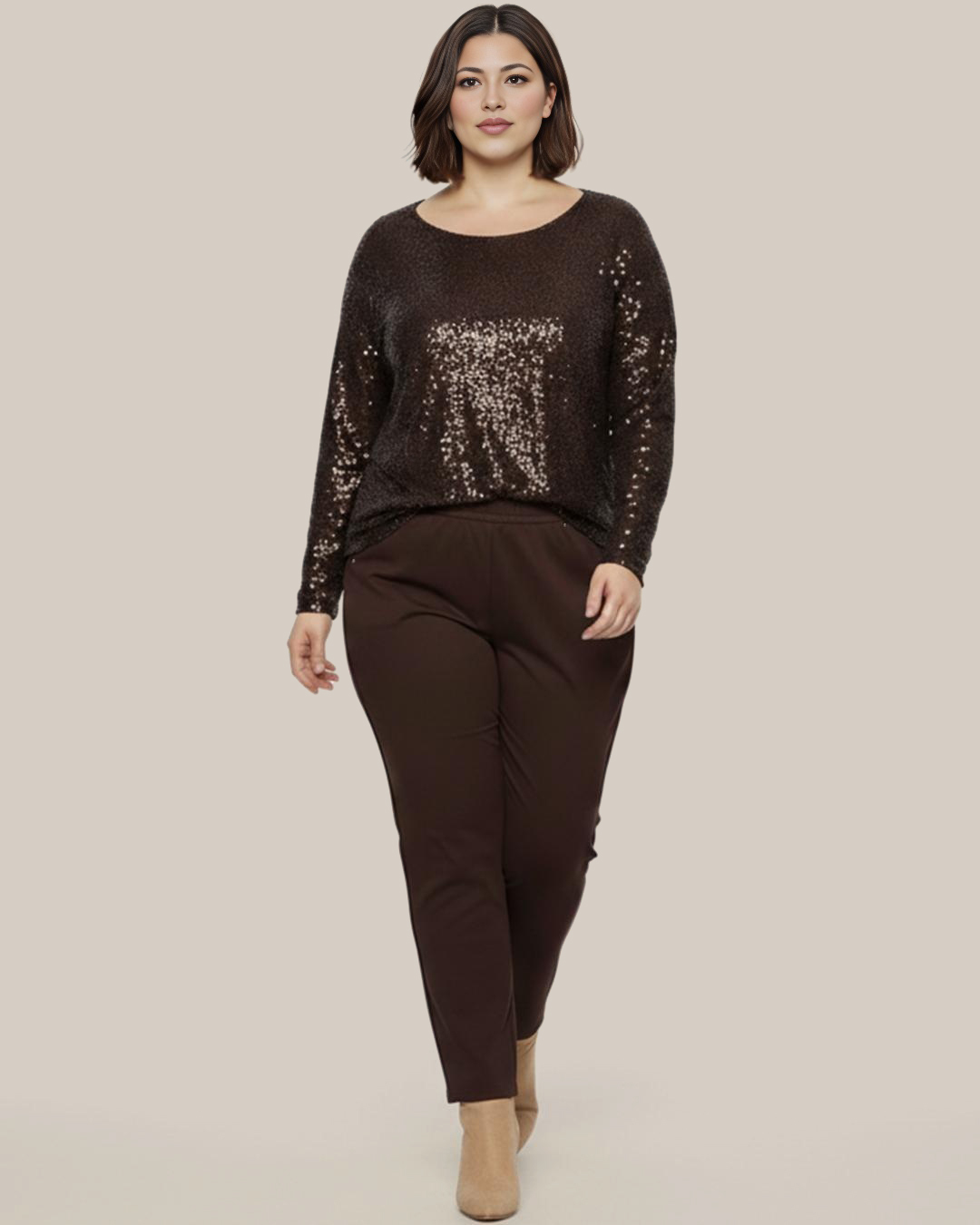 Pantalón de Punto Roma Invierno▷ ¡El pantalón que necesitas para un look cómodo y chic este invierno! Este pantalón con goma en la cintura, de tiro alto y pierna recta estiliza la figura con su tejido de punto Roma, que aporta confort y estilo. ¡Un básico imprescindible para tus outfits!
