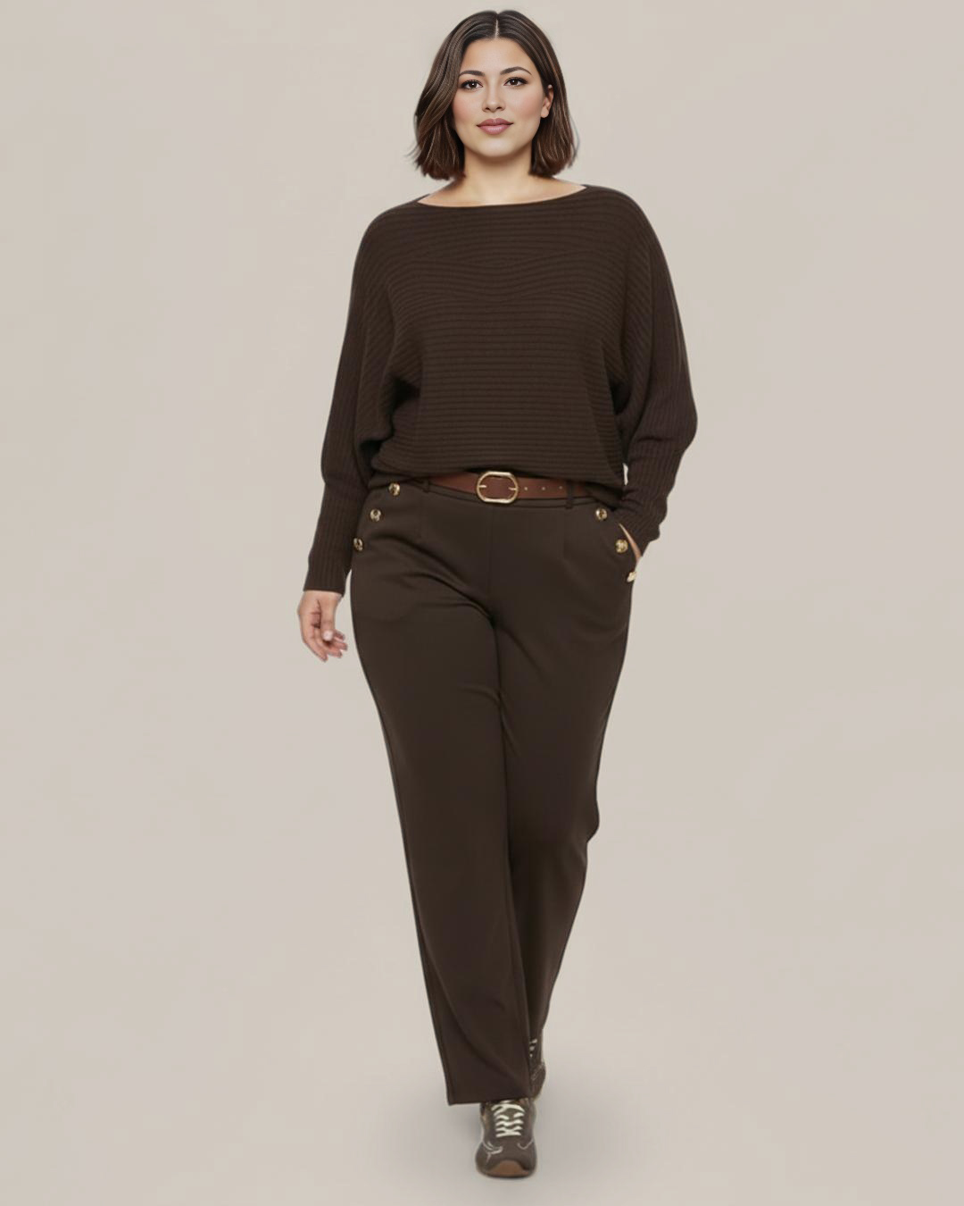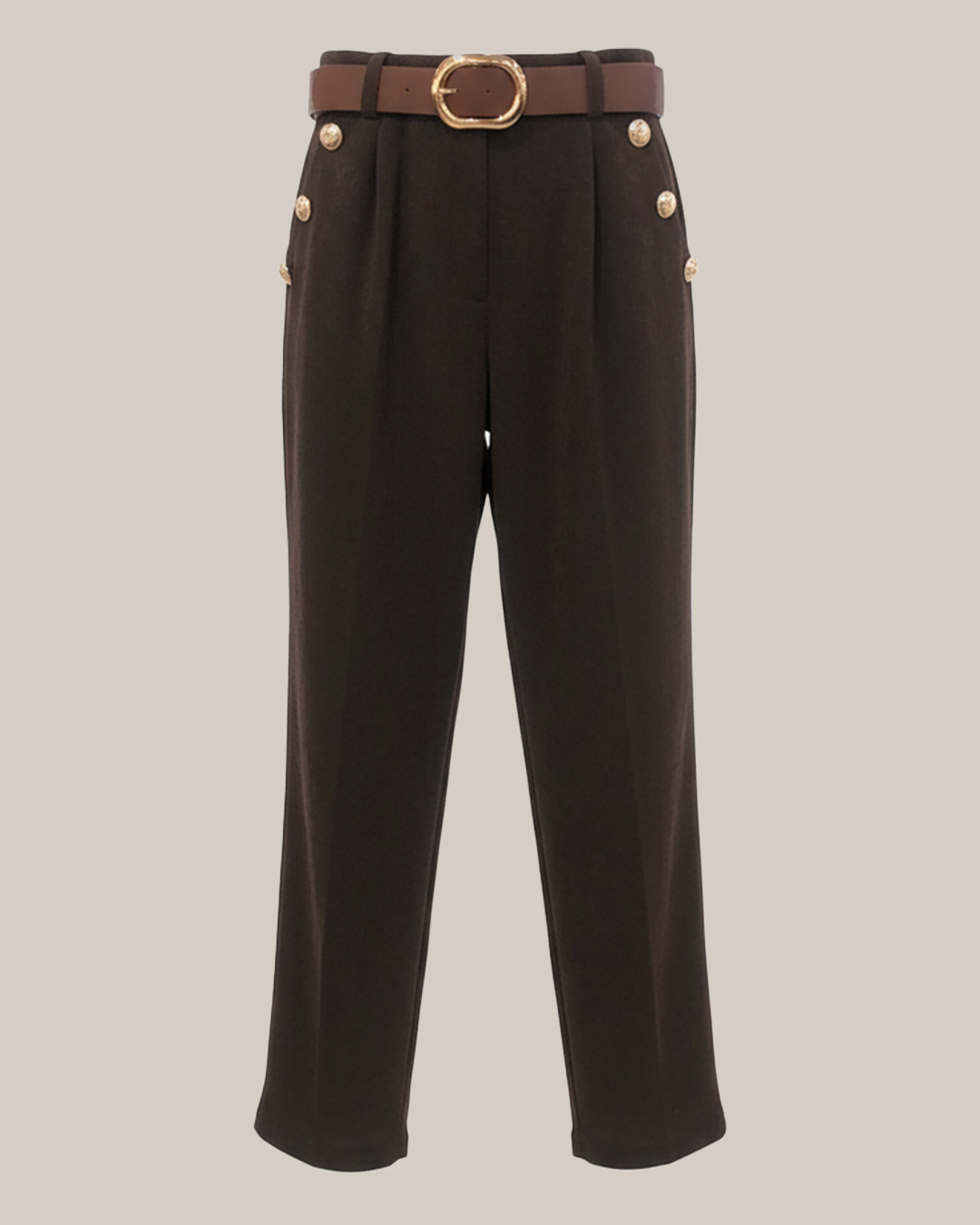Pantalon Tapered ▷ ¡Atrévete con el estilo militar chic y low cost más trendy! Este pantalón de corte tapered y tiro alto es ideal para mujer curvy y sienta de maravilla. Incluye un cinturón y está decorado con botones dorados que le dan un aire sofisticado. El tejido es fluido, cómodo y con gramaje. ¡Perfecto para un look juvenil, encuéntralo en Quiles_Shop!
