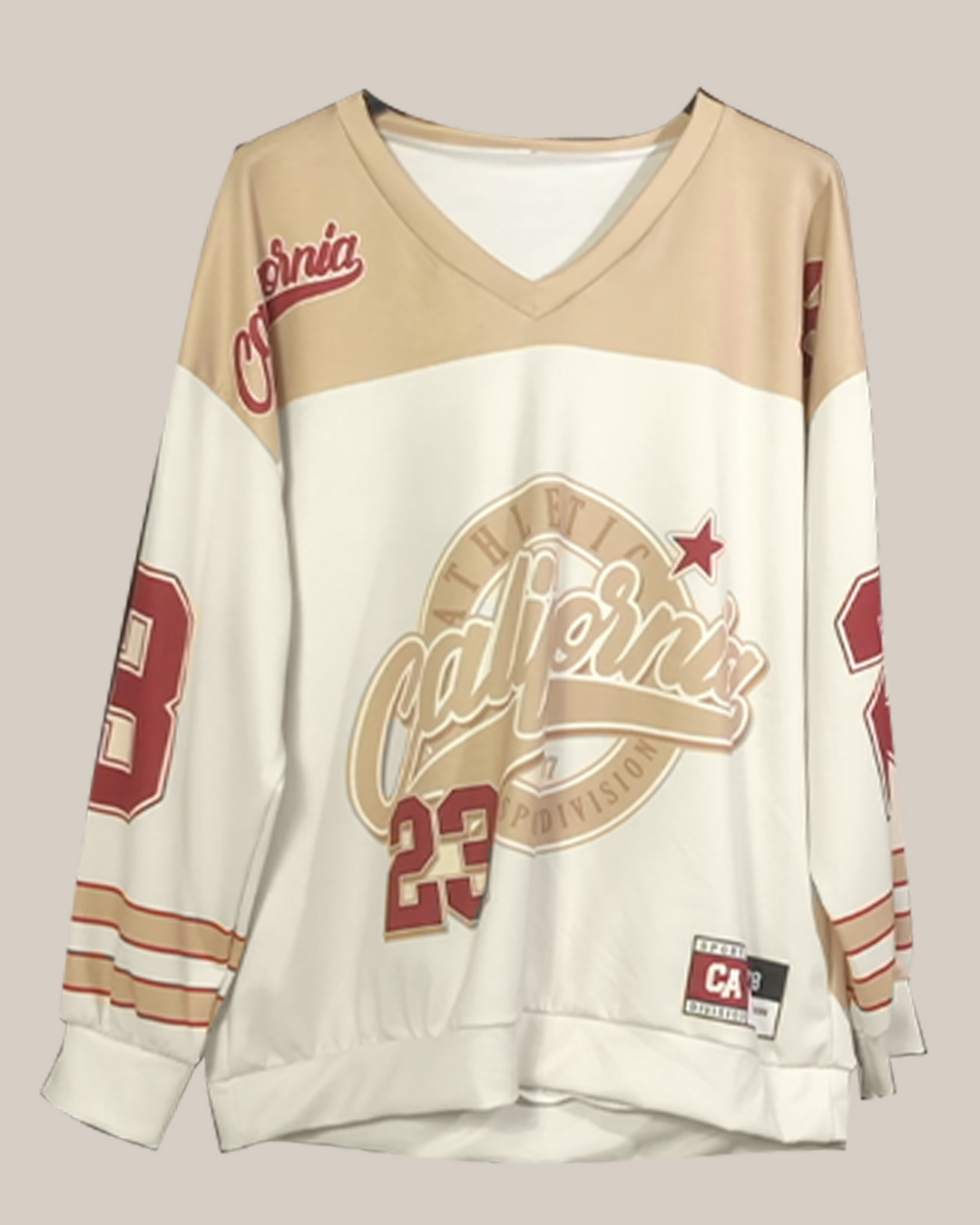 Sudadera California 23 ▷ ¡La moda más cool y deportiva ha llegado! Esta Sudadera Oversize de estilo americano es perfecta para un look juvenil y desenfadado. Cun un diseño en cuello de pico y mangas largas con el número «23». Su corte es amplio y muy cómodo, ideal para Tallas Grandes. ¡Consigue esta prenda low cost y prepárate para marcar estilo!