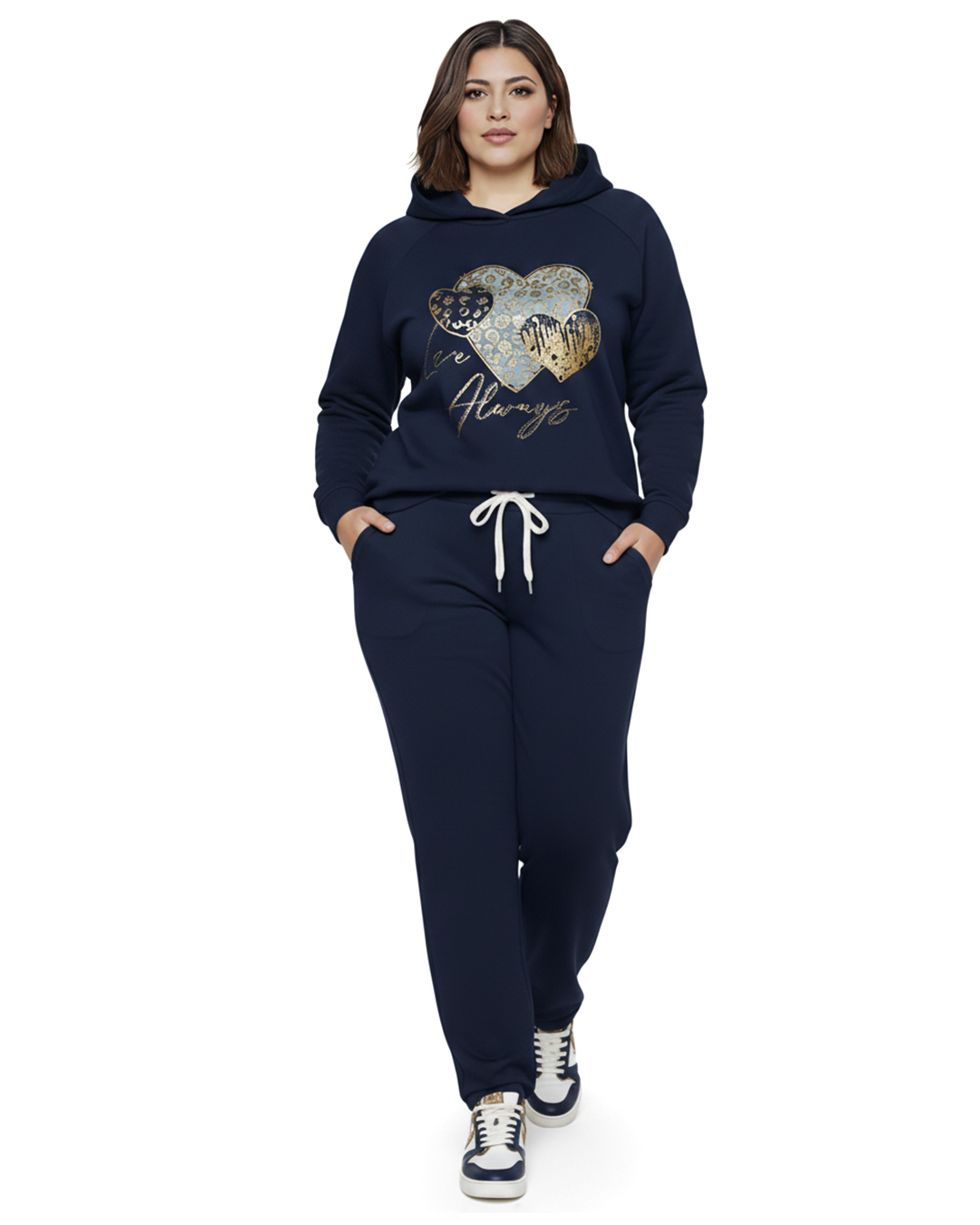 Sudadera Corazones ▷ ¡Pura tendencia y dulzura en una sola prenda! Confeccionada en un confortable tejido de neopreno, destaca por su diseño frontal de corazones con acabados en animal print y detalles dorados. Su capucha y corte relajado la convierten en el básico más chic de la temporada. ¡Combínala con nuestro Pantalón Jogger Street y marca la diferencia!