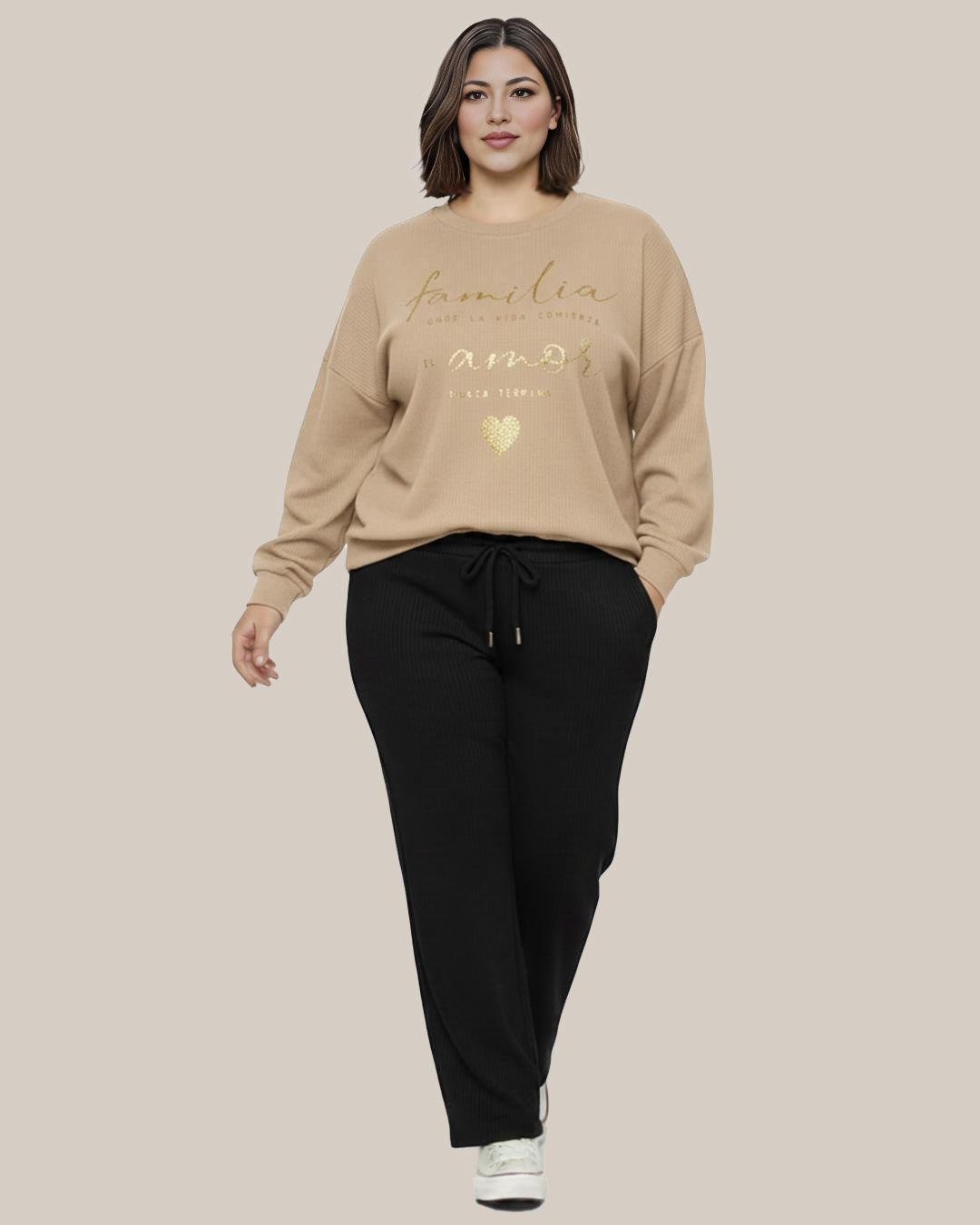 Sudadera Micropana Corazón ▷ ¡Lleva el mensaje más tierno con el máximo estilo! Esta sudadera de suave tejido micropana destaca por su precioso mensaje y un corazón dorado brillante. Incluye un cordón ajustable en el bajo para un acabado perfecto y moderno. ¡Un básico con alma de Quiles_Shop!