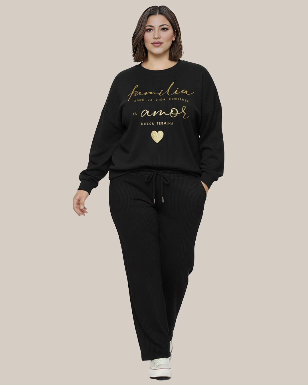 Sudadera Micropana Corazón ▷ ¡Lleva el mensaje más tierno con el máximo estilo! Esta sudadera de suave tejido micropana destaca por su precioso mensaje y un corazón dorado brillante. Incluye un cordón ajustable en el bajo para un acabado perfecto y moderno. ¡Un básico con alma de Quiles_Shop!