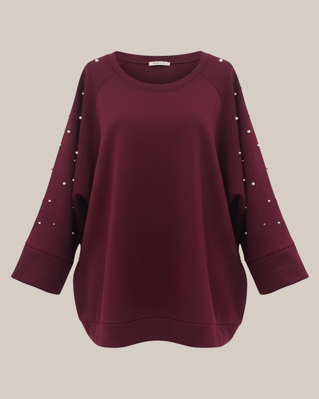 Sudadera Perlas ▷ ¡El lujo Low Cost que te mereces! Dorte oversize y juvenil es ideal. Con pequeñas perlas en las mangas que le dan un aire muy chic, elevando una prenda casual a un nivel superior. El tejido en neopreno suave y con el interior afelpadito. ¡Perfecta para un outfit sofisticado y comfy! ¡Atrévete a brillar con el toque de distinción de Quiles_Shop!