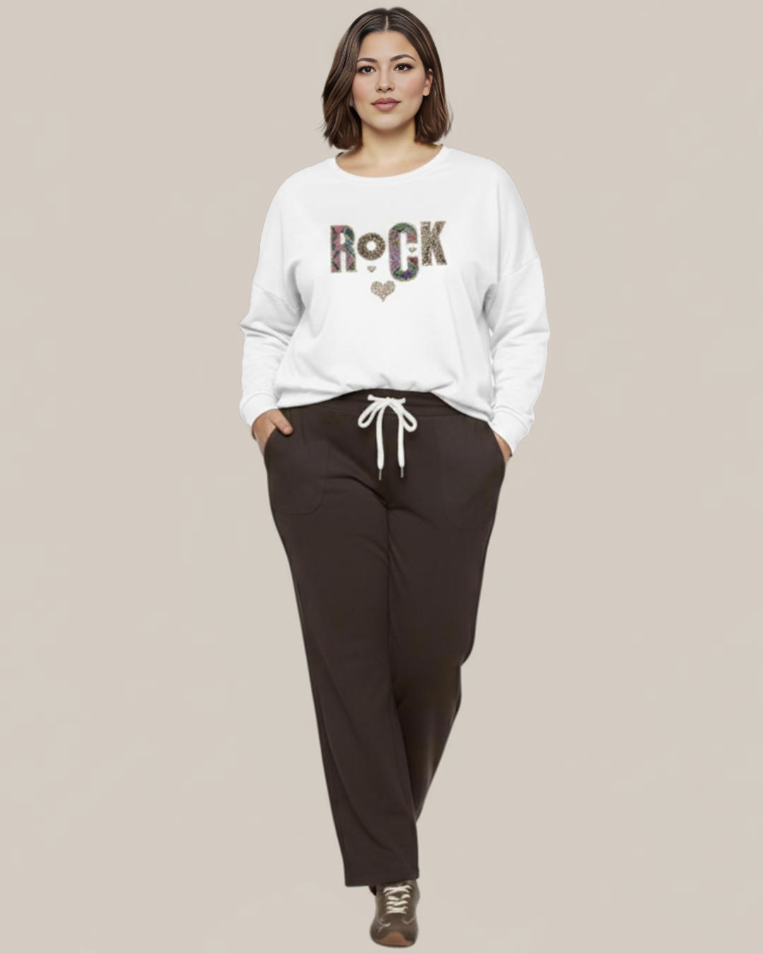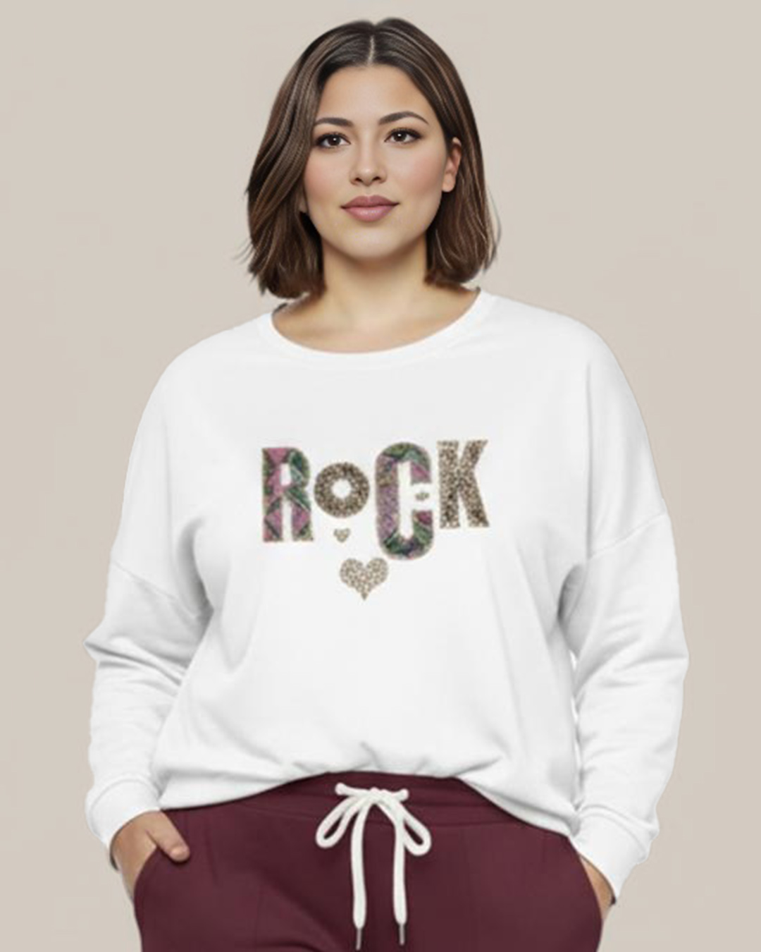 Sudadera Rock ▷ ¡Dale un toque grunge y cool a tus días con esta sudadera comodísima! Es ideal para mujeres que aman el estilo juvenil y el precio low cost. El print «ROCK» combina texturas animal print y brillo. Su diseño oversize con goma ajustable en el bajo estiliza la figura y es muy trendy. ¡Crea looks urbanos top, añádela a tu armario ya!