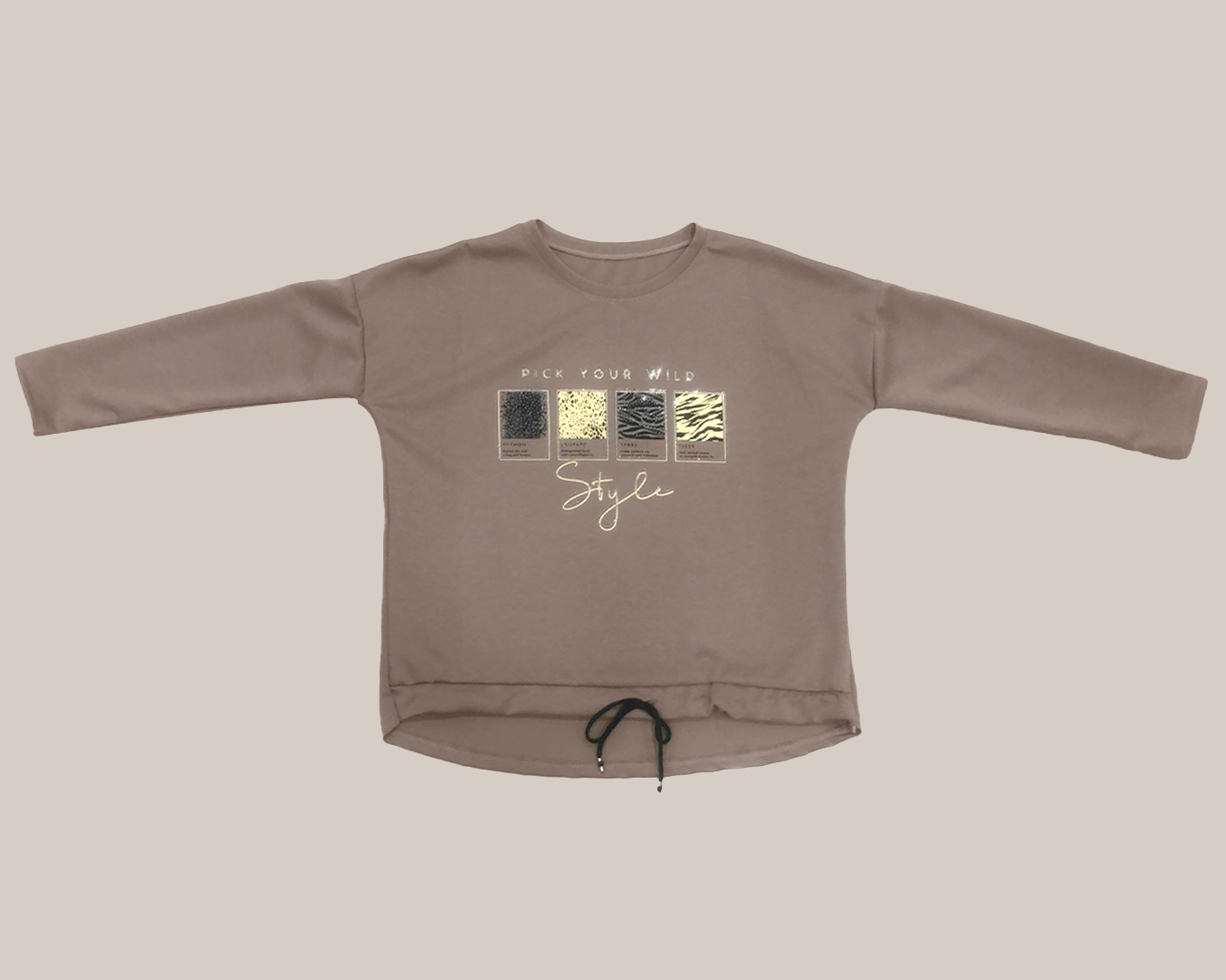 Sudadera Style ▷ ¡El estilo más salvaje y cómodo para tu look! Con un diseño único que combina texturas de animal print y el mensaje Style, esta sudadera de corte ancho es ideal para tus días de relax. Su bajo ajustable con cordón y su tejido en neopreno la hacen súper funcional. ¡Perfecta para un outfit casual y con un toque atrevido!
