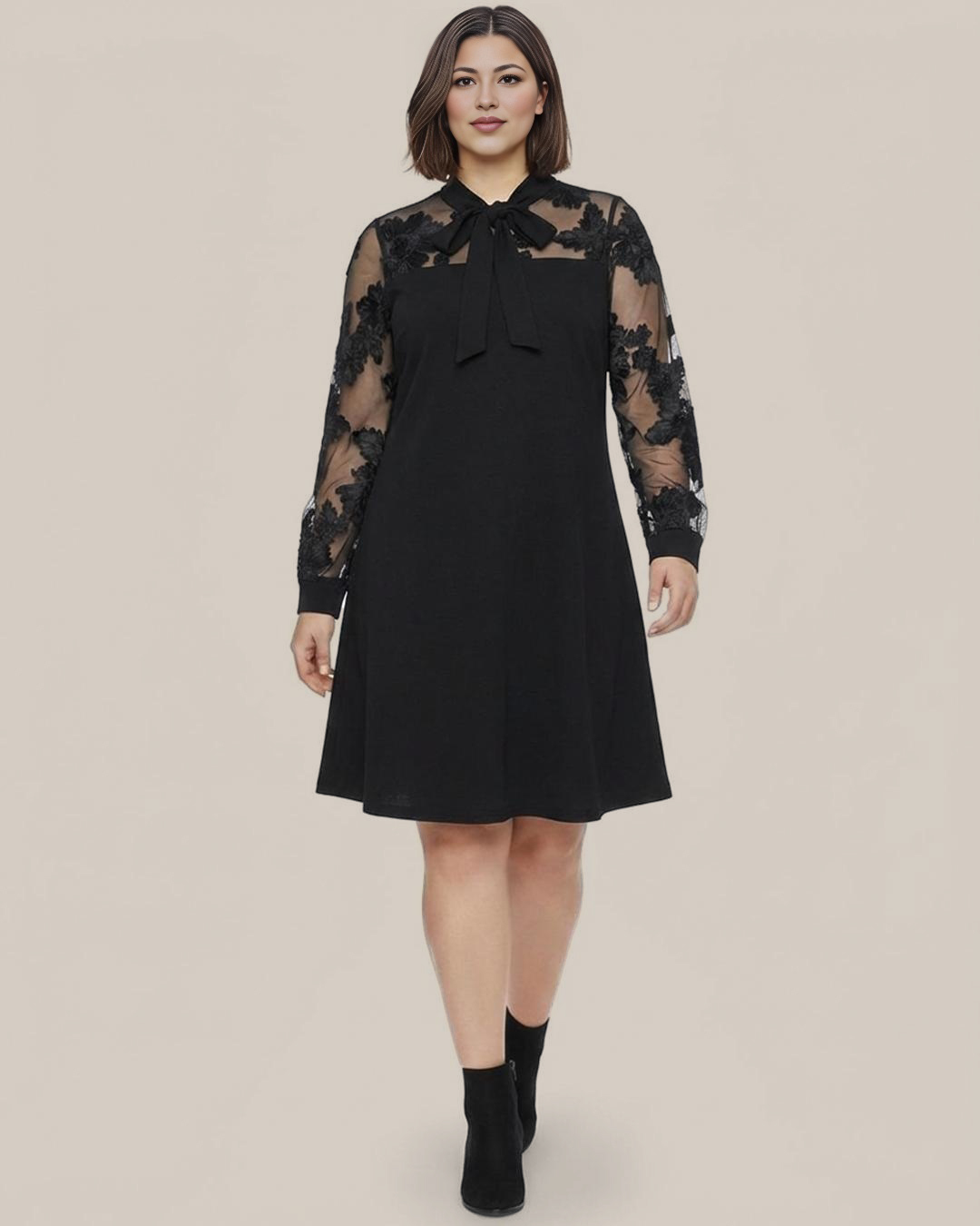 Vestido Imperial ▷ ¡Deslumbra con la elegancia más sofisticada y romántica! Este diseño en color negro destaca por sus espectaculares mangas de gasa con bordados florales en relieve. Su cuello con lazada aporta un toque femenino irresistible, convirtiéndolo en la prenda estrella para cualquier evento especial. Encuentra estilo en Quiles_Shop.