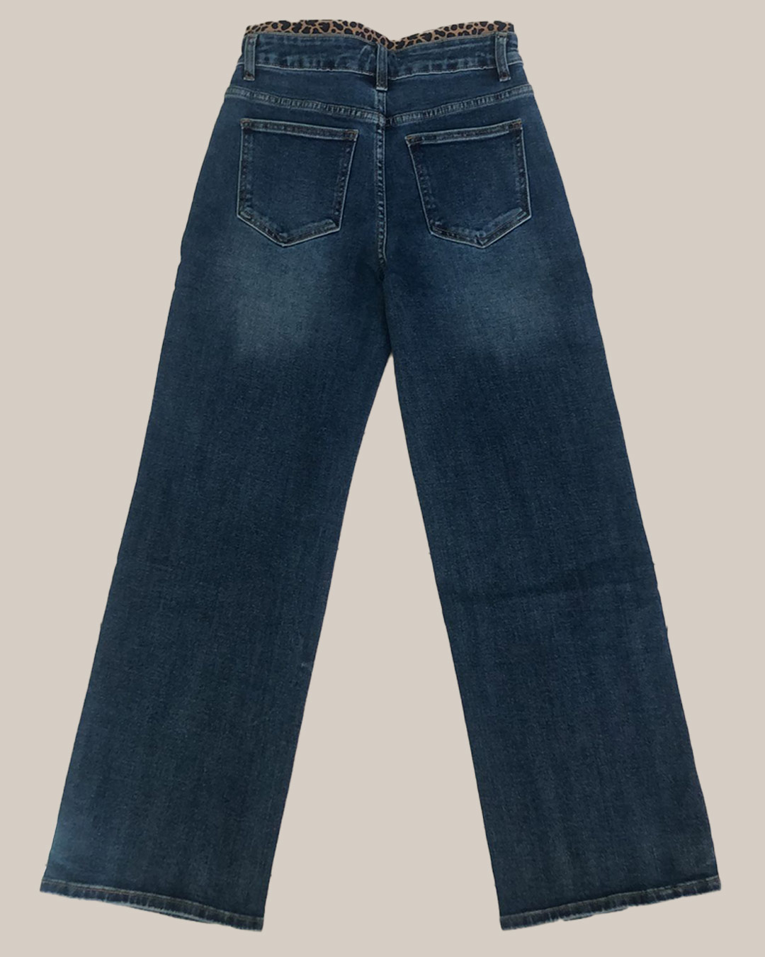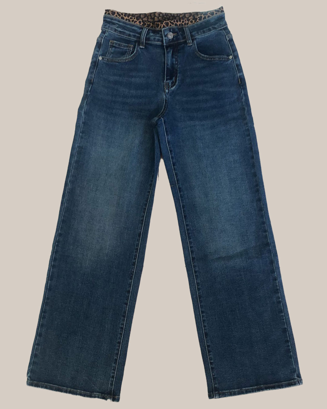 Vaquero Cinturilla Animal Print ▷ ¡El denim más cool y a la última! Este vaquero de corte wide leg es la prenda estrella para la que busca moda joven y en tendencia. Su efecto envejecido le da un aire vintage muy actual, y el interior de la cinturilla con animal print es el toque de personalidad que te define. ¡Combínalo con tus prendas favoritas para un look que arrasará!