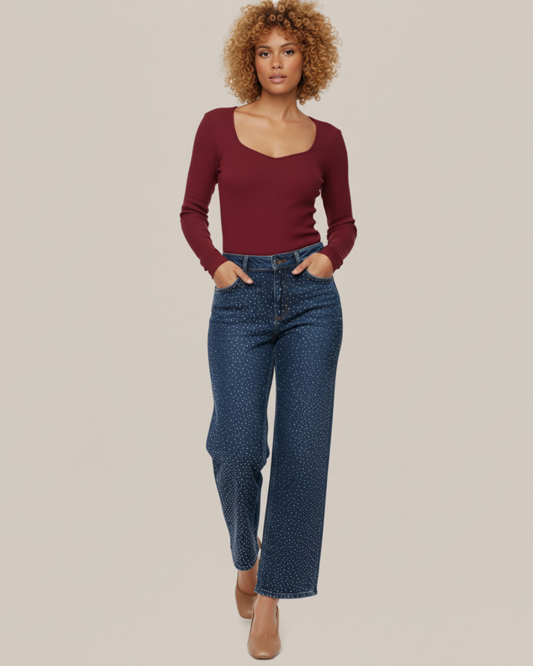 Vaqueros Strass ▷ ¡Brilla con luz propia con los jeans más deseados de la temporada y eleva tu estilo! Vaqueros de corte recto wide leg que son absoluta tendencia, perfectos para estilizar la figura. Incorporan detalles sutiles de strass que añaden un toque glam. Ideales para un look de día o de noche con ese punto chic. ¡Atrápalos a precio low cost!